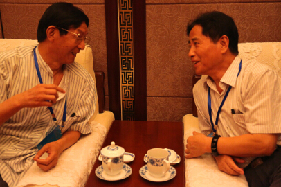 著名作家李佩甫(左)与陈世旭老友相见欢。