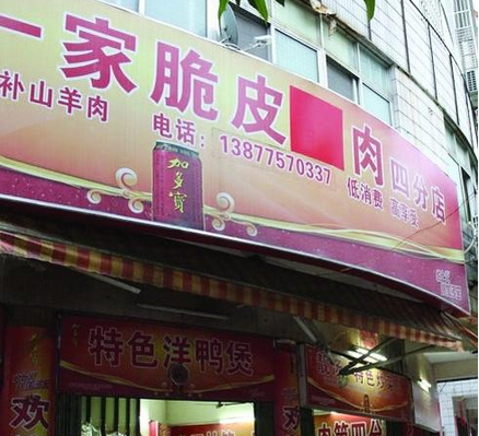 这名员工还对南都记者说:“这边不是叫玉林第一家脆皮狗肉吗?前几天贴掉‘狗’了,现在连‘脆皮’都不能有,我们现在换成玉林第一家×记大排档了,牌子也已经换了。”