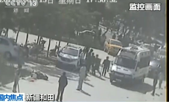 新疆和田市市民:旁边左右的人看到就报警的报警,然后该出来的就与歹徒搏斗了。