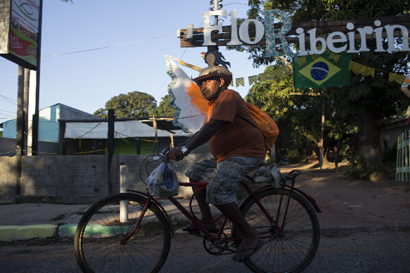 6月19日,在巴西库亚巴,一名当地人在路上骑行。