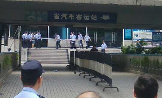 今天12时30分许,越秀警方现场接到群众报警,称有一男子持刀窜至省汽车客运站。接报后,民警立即前往处置,发现一名男子正持刀劫持一名女子,遂喝令持刀男子放下刀具。该男子不听警告,挥刀砍向民警。在警告无效的情况下,民警依法果断开枪,将其击毙。事件中人质安全获救,无其他人员伤亡。