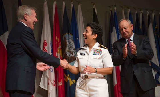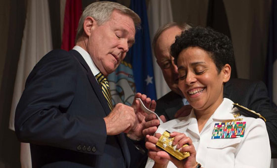 当地时间7月1日,美国华盛顿,美国海军为其首位女性四星上将举行了授衔仪式,使米歇尔·霍华德成为美国海军238年历史中第一位晋升到此高位的女性。评论称这是美国海军的重要里程碑。在仪式上,霍华德被晋升为美国海军作战部副部长,这是美国海军的第二高位。