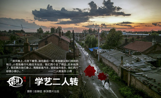 下午5点,辽宁开原市,落日的余晖照亮晚霞,两只红手绢在通往沈阳高速公路旁的乡间飞舞。这里有一家二人转学校,每年都会招收上百名学生。不同于一些传统戏曲的小众化或没落的趋势,二人转近年的发展越来越多样,但二人转演员台前风光、幽默的背后,满满的都是隐忍。