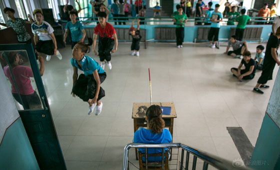 下午,学校开始做各种打把势的训练。老师拿着教鞭,盯着怕苦偷懒的孩子。下午的训练时间是四个小时,这也是最辛苦的。