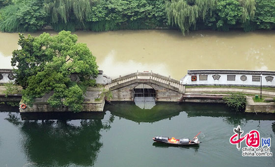 2014年7月7日所拍摄的浙江绍兴市东湖风景区,一墙之隔水质差别明显。中国网图片库 李瑞昌 摄影