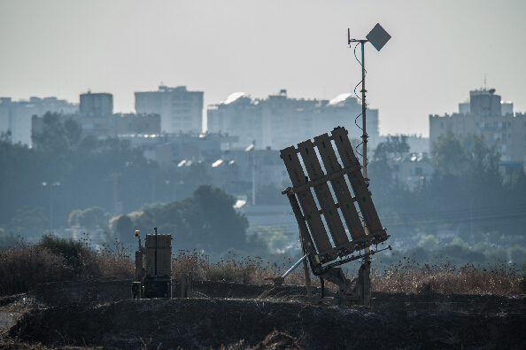 7月8日,“铁穹”火箭弹拦截系统部署在靠近加沙边境的以色列南部城市阿什杜德附近。