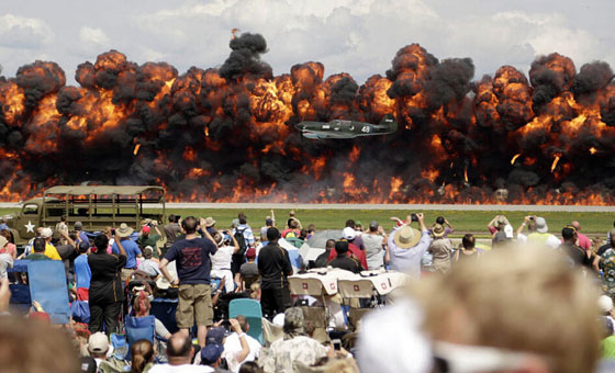 据大西洋月刊 叙述历史的方式可以有很多种,其中最为生动的或许就要数“历史重演”了:扮演起故事的主角,穿上他们的衣服,模仿他们的动作——一场好戏就这样在观众面前拉开帷幕。过去的十二个月中我们遇到了许多极为重要的战争纪念日,例如美国内战、中世纪欧洲战争、世界大战等等。美国大西洋月刊收集了一些最近的世界范围内的历史回放,人们用这种“重演”的方式来纪念这些历史性的战争时刻。图为去年8月3日,二战时期的美国飞机在威斯康辛州的火墙前重现珍珠港事件。