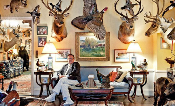 卖主格利高里(Gregory Speck )今年61岁,自称是曼哈顿名流、著名记者、作者,已经在这套公寓居住了36年。虽然公寓位于繁华的曼哈顿,而它看起来更像是猎户的农舍,公寓里到处都装饰着动物标本。格利高里并非猎人,这些动物标本都是他从各地搜罗来的,比如博物馆、迪斯高格甚至是超市的冰柜。格利高里从上世纪90年代初开始收集动物标本,现数目已多达500件,花费大约为5万美元(约31万元)。这些标本分别收集在他位于曼哈顿的公寓和弗吉尼亚州哈瑞森堡(Harrisonburg)房子。据悉,格里高利是个忠实的动物爱好者,从小就渴望能够拥有一家动物园。