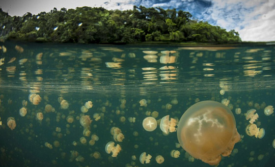 帕劳无毒水母湖:粉红色和紫色的发光的水母,大小不等,从一分钱一个足球,并且是唯一的已知的无刺无毒水母。水母湖是帕劳最具特色的景点之一。在数万年前,水母湖曾是海的一部分,由于地壳运动,周围的海床升高,逐渐将它与外海隔绝,形成了一个看似普通的内陆咸水湖。湖中大多数海洋生物都随着养分的消耗而消亡,只剩下了一种低等的、靠少量微生物就可以生存的海洋生物——水母。由于天敌们的消失,这些水母“遗失”了祖先用以防卫自身的武器——身体内的毒素。这样,帕劳水母湖拥有了世界上独一无二的无毒水母。