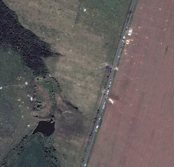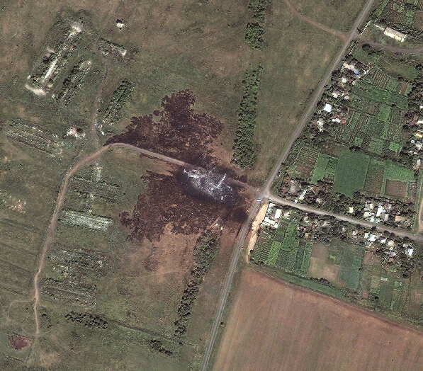 这张7月20日公布的卫星图片显示马航MH17航班客机坠毁地点。