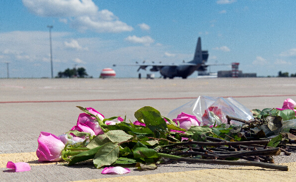 当天,两架运载约40具马航MH17航班遇难者遗体的飞机抵达荷兰。之后,这些遗体被转运至希尔弗瑟姆进行身份鉴别。