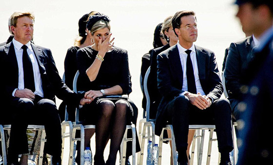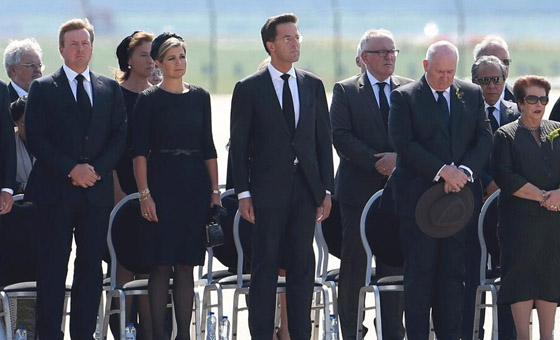 大约有200具马航坠机遇难者遗体被运抵荷兰,国王威廉·亚历山大 (Willem-Alexander)携王后马克西玛、首相马克·吕特(Mark Rutte)与许多悲伤的亲属,一同在艾恩德霍芬机场迎接。当遇难者遗体被从运输机上抬下时,国王夫妇手握在一起,难抑悲伤之情。王后眼中甚至数次流下热泪。荷兰政府已经宣布7月23日为全国哀悼日。