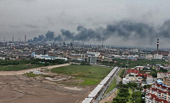 据了解,罐内有500吨轻质油,另有5500吨含硫污水。上海消防已紧急调派数十辆消防车赴现场扑救。新华社发