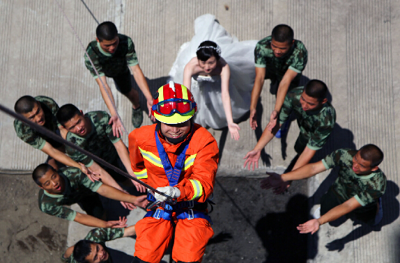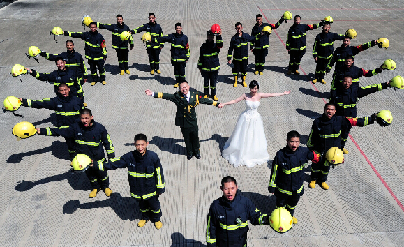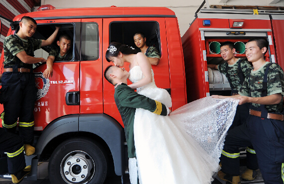 7月底,在建军节和七夕情人节即将到来之际,年轻的消防员许昊然与自己隔空恋爱3年多的女友在宁波消防营房里,拍摄婚纱照。对于长期24小时执勤战备的消防员们来说,与爱人相聚的日子如同牛郎织女每年的“鹊桥相会”。