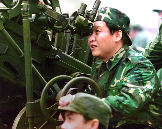 1997年11月,时任福建省委副书记、福建陆军预备役高炮师第一政委习近平体验某型高炮炮手训练。