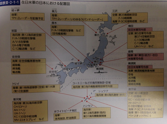 驻日美军在日配置一览图,图片翻拍自日本2014年度《防卫白皮书》。人民网驻日本记者刘军国摄