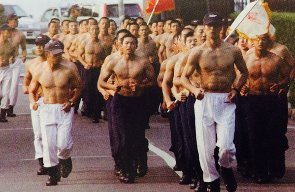 日本自卫队员赤膊训练,图片翻拍自日本2014年度《防卫白皮书》。 人民网驻日本记者刘军国摄