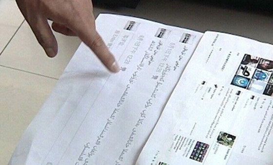 阿巴拜克热木:我坐在那电脑上,我把自己想的和从那个境外广播听到还有社会上谣传的莎车死的人比较多的谣言加起来,编造出了更大的谣言。阿巴拜克热木在向境外发送的信息中还写道:这里的情况很严峻,我现在写这个信的时候警车鸣着警笛在巡逻。图为阿巴拜克热木编造虚假信息的证据。