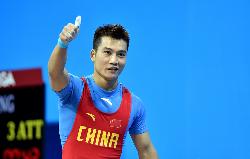 在前半段的抓举比赛中,中国选手蒙成最后一个出场。在教练“姿势到位”的提醒下,稳稳举起了120公斤的杠铃。他的第一次试举重量比挑战重量第二的越南选手多出12公斤。