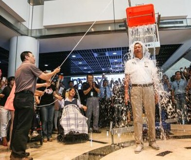 “冰桶挑战”规则为:接受挑战的名人要往自己头上倒冰水,体验渐冻人感觉,然后点名3个好友参与,拒绝挑战者,就要为渐冻人捐款。