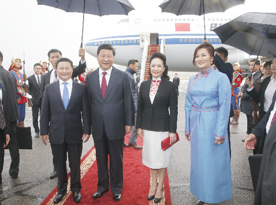 习近平携彭丽媛抵达蒙古首都