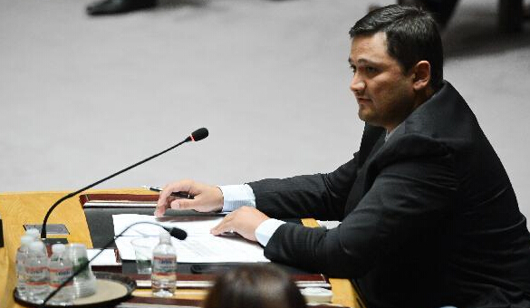 8月28日,联合国负责政治事务的副秘书长费尔特曼(中)在纽约联合国总部参加安理会就乌克兰局势召开的紧急会议。联合国安理会28日就乌克兰局势召开紧急会议。乌克兰代表指责俄罗斯对该国发动了“直接侵略”,俄代表则予以否认,联合国官员呼吁立即设法扭转局势升级的趋势。