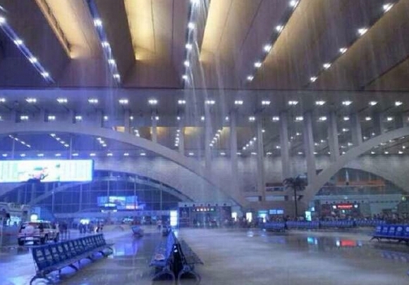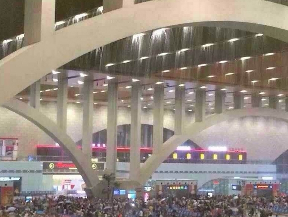 石家庄火车站遭遇暴雨成“水帘洞”