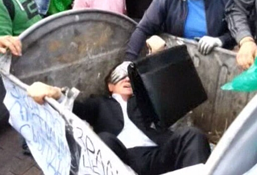 乌克兰议员卓拉夫斯基被扔进垃圾桶。