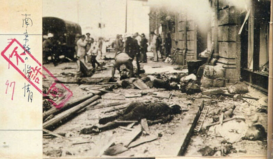 图为1937年9月,在日军空袭南京城,令这座六朝古都遍地尸首。这样反映战争残酷的照片被判为“不许可照片”。