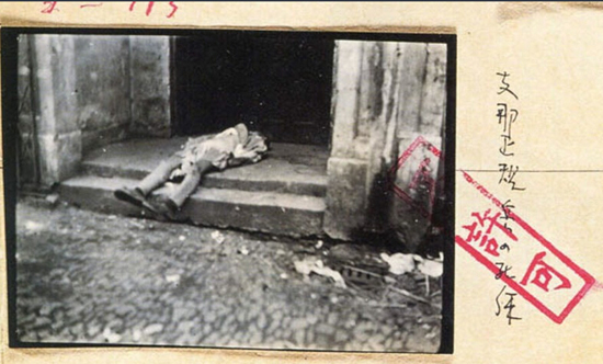 2014年9月18日消息,1937年至1945年期间,日本每日新闻社随军记者拍摄了大量日军侵华的照片。为了控制舆论,日军加强了新闻审查制度,由陆军省、海军省和情报局以极其严苛和机械的标准新闻照片进行审查。除了涉及军事情报等机密信息之外,反映日军侵华时期烧杀抢掠,被认为有损日军“形象”的,会引起士兵厌战情绪的照片,均被盖上了“不许可”印章,严禁对外发表。图为1937年8月,日军进攻上海市区,南京路上尸横遍野。