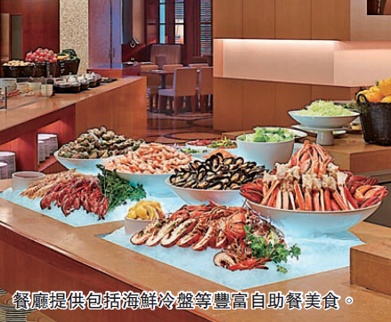 到了11月,咖啡廳會選取各種矜貴鮑魚入饌,適合喜歡入秋進補的食客,屆時惠顧自助晚餐,即可享用蠔皇花菇鮑片一客。鮑魚營養豐富,是補身之選,肉厚味香的花菇則向來被視為延年益壽的補品,兩者同吃相得益彰,而且蠔油能帶出鮑魚的鮮味,滋補美味。除上述燕窩及鮑魚美饌外,餐廳亦會提供各種自助餐美食,包括日式廚房的新鮮刺身、壽司、鐵板燒和即炸天婦羅;西式廚房的即烤海鮮、羊肉和牛肉等,以及即制焗比薩和意粉,還有印籍廚師烹調的咖喱、串燒和印式薄餅等。當然少不了女士至愛的沙律及甜品,保證讓食客大飽口福。