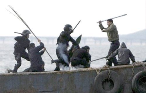 资料图:中国渔民与登船的韩国海警队员冲突