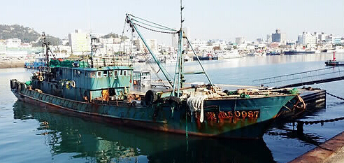 资料图:被韩国海警扣押的中国渔船“鲁营渔50987号”(韩联社)