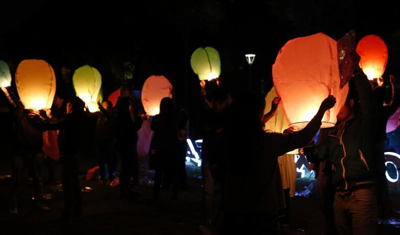 沪單身男女集體放飛孔明燈求“脫單”