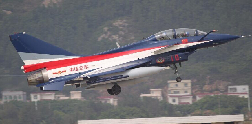 11月5日,中國空軍八一飛行表演隊飛機在華北某機場起飛。隨著中國空軍八一飛行表演隊8架殲-10表演機5日飛抵珠海,即將開幕的第十屆中國航展上的“中國空軍熱”正不斷升溫。中國空軍新聞發言人申進科上校5日透露,除殲-10飛機外,空軍飛行員還將駕駛運-20、空警-2000、空警-200等在航展上進行飛行表演,空軍各型現役裝備也將首次在靜態展示區成體系亮相。