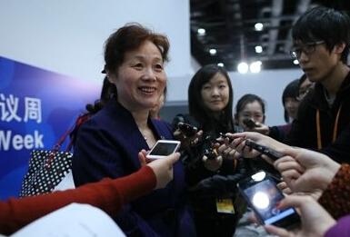 今日上午,全國婦聯在2014亞太經合組織領導人會議周就中國婦女事業的發展與進步舉行吹風會,全國婦聯國際部部長牟虹(左一)接受記者采訪。新京報記者薛珺攝