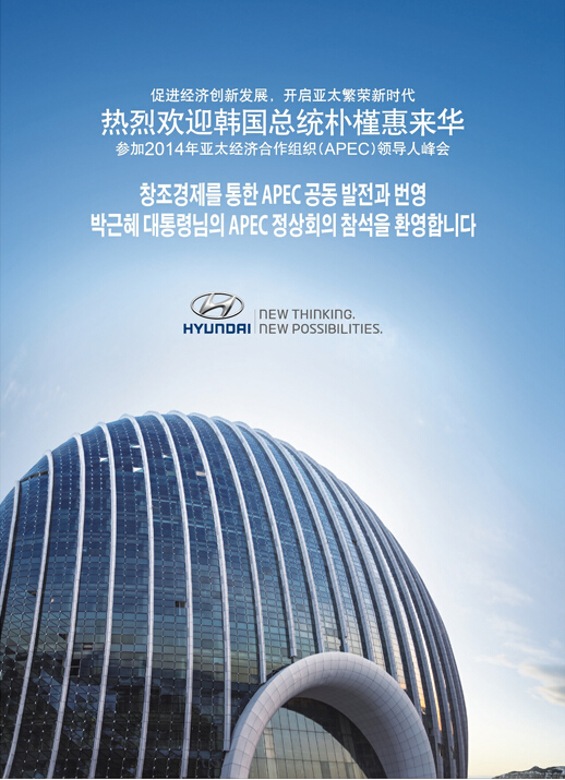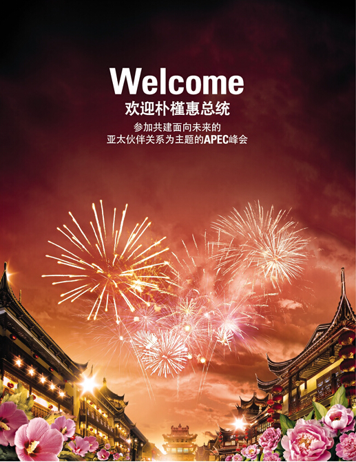 2014年11月10日,四家在華韓國企業在人民日報刊登四個整版廣告,歡迎樸槿惠總統來華參加APEC領導人非正式會議。
