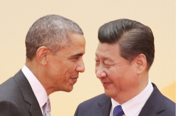習近平與奥巴马。2014亞太經濟合作會議(APEC)領袖峰會11日在北京雁棲湖國際會議中心登場,中國國家主席習近平(右)與美國總統奥巴马(左)微笑致意。中央社記者吳翊寧北京攝