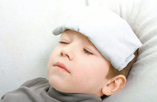 父母可用冷毛巾、冰袋濕敷在額頭,為孩子降溫