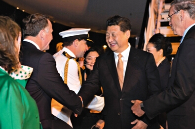 習近平是在結束對澳大利亞的國事訪問后抵達奧克蘭的。離開悉尼時,澳大利亞總督代表、總理代表、新南威爾士州州督代表等到機場送行。