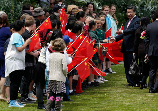 圖為新西蘭學生歡迎習近平。