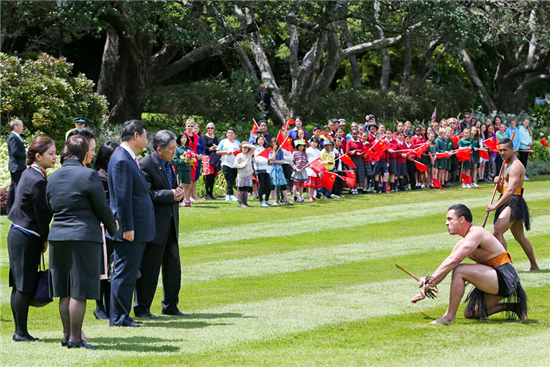 圖為習近平觀看毛利戰舞。