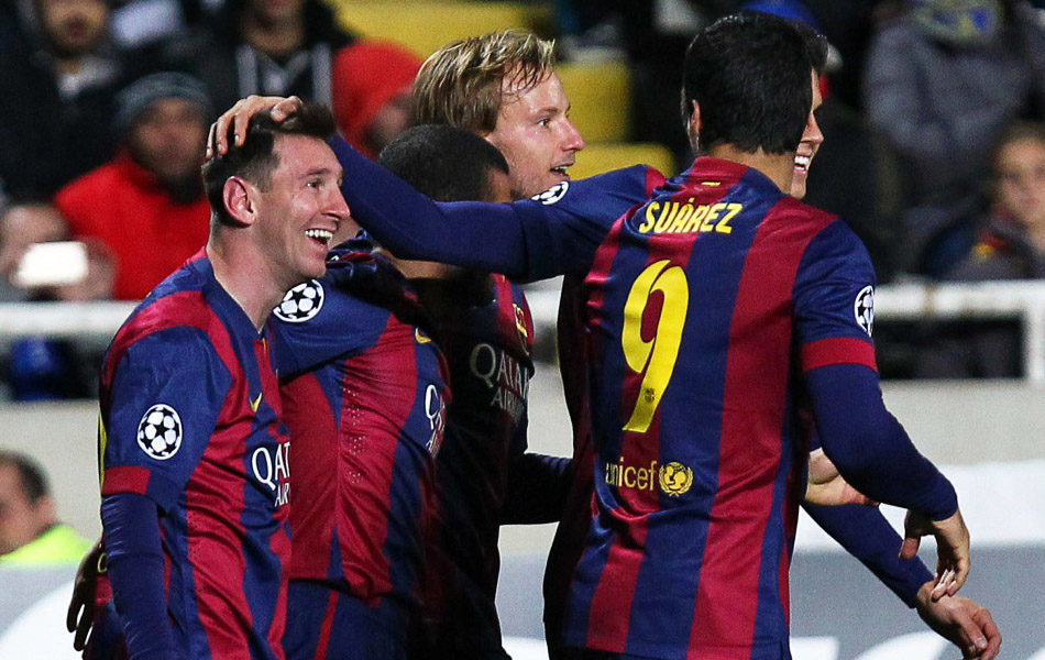客战希腊人竞技,巴萨取胜仍是头号目标,而梅西身边少了最默契的小伙伴内马尔,后者轮休坐在替补席上。此外,梅西也把中路位置让给了苏亚雷斯,自己则经常在右路活动,但即便如此,梅西的进球势头依然不可阻挡。