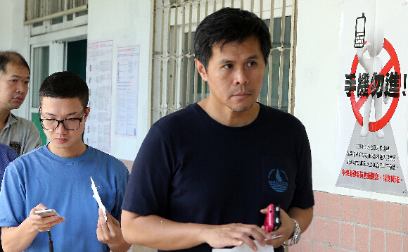 民眾將手機置于投票所外,避免受罰。