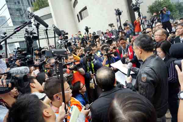 香港法庭執達主任在金鐘非法“佔領區”宣讀禁制令。12月11日上午9時,香港法庭執達主任開始在被示威者非法霸佔的金鐘“佔領區”宣讀禁制令,警方也將協助法庭執達主任執行禁制令,並行使其它法律賦予的權力,清除中環、金鐘一帶的障礙物,開通被堵塞的道路。香港中通社
