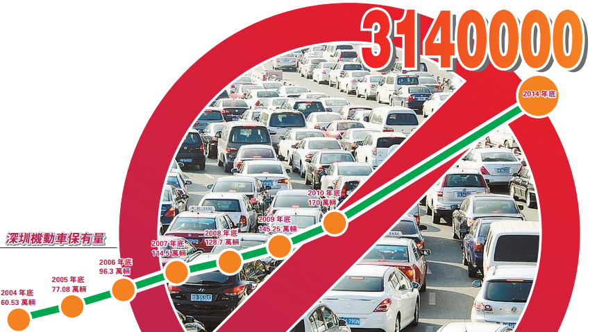 截至12月20日,深圳市機動車保有量超過314萬輛,每公里道路機動車約500輛,車輛密度全國第一。僅2013、2014兩年,深圳新增機動車近100萬輛,相當於香港機動車總量的1.5倍。