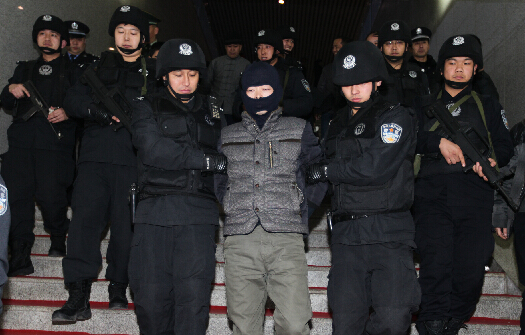 1月19日,犯罪嫌疑人郭某(中)被公安民警押解回河南省三門峽市。