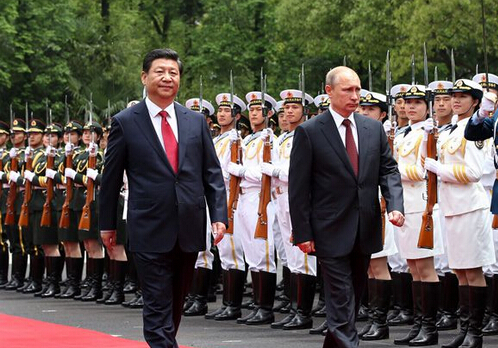 2014年5月20日,習近平在上海同普京舉行會談。會談前,習近平在上海西郊會議中心廣場為普京舉行歡迎儀式,兩人共同檢閱解放軍三軍儀仗隊\資料圖片