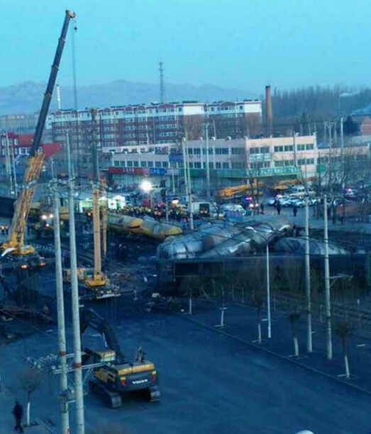 据新华社报道,9日3时30分,沈阳铁路局一列货运火车正常行驶在锦(州)承(德)线时,与违章闯入道口的大货车相撞,导致机车及11节车厢颠覆,所幸未造成人员伤亡。事发铁路中断正在抢修当中。