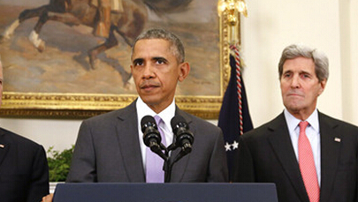 当天在记者发布会上,美国副总统拜登、国务卿克里及即将卸任的国防部长哈格尔一字排开、站在奥巴马后方,试图传达美国团结一致对抗IS的坚定决心。